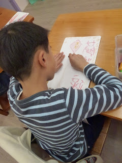 我都沒想過春聯也能這樣子畫,一貼起來真的好有過年的氣氛喔!宏兒今天也送給我他畫的賀年卡,對於他能這樣開懷的創作,並且滿意他的作品,還帶著滿滿的愛來送給我,身為他的阿娘,我真的很感動!他現在還跟他的爹一起玩、一起創作,並說著:魚要大大的才有福氣!幸福的宏媽